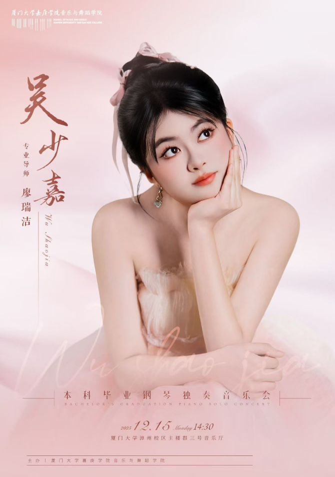 音乐会 名家名师进校园系列----李未明《和声的魅力与即兴的乐趣》 2022级舞蹈表演专业毕业晚会 2025福建省高雅艺术进校园系列活动 热烈庆祝厦门大学嘉庚学院音乐与舞蹈学院成立 吴少嘉本科毕业钢琴独奏音乐会 视频影音 更多 新闻报道 更多 青春歌韵传经典 学子风采耀鹭岛 ——我院在厦门市青少年儿童歌手赛斩获佳绩 厦门大学嘉庚学院音乐与舞蹈学院举办“一二九”党团知... 喜报!音乐与舞蹈学院原创肢体剧《坠落之前》双线夺奖... 对接国家特教提升计划,我校携手厦门特殊教育学校共筑... “嘉”讯!音乐与舞蹈学院揭牌成立 音乐系钢琴教研室实践周:在多元体验中读懂音乐的“立... 中共漳州市芗城区委宣传部赴厦门大学嘉庚学院开展林语... 音乐与舞蹈学院唱响《宪法伴我们成长》 压轴思明区“... 和声润心育美 名家领航铸魂——李未明教授讲座绘就嘉庚... 大学课堂“前移”小学讲台——音乐与舞蹈学院&海沧青少... 通知公告 更多 厦门大学嘉庚学院音乐系毕业论文(设计)指导手册 202... 厦门大学嘉庚学院音乐系毕业论文(设计)指导手册 202... 2025届毕业论文(设计)查重检测工作方案 音乐系毕业论文(设计)工作领导小组成员名单(2025年... 厦门大学嘉庚学院音乐系毕业论文(设计)指导手册 音乐系毕业论文(设计)格式参考文档 音乐系毕业论文(设计)工作领导小组成员名单 2024--2025学年第一学期教材选用计划表 厦门大学嘉庚学院音乐系首届五项全能大赛 厦门大学嘉庚学院音乐系舞蹈教研室“舞艺嘉庚杯”首届... 风采之窗 更多 音乐与舞蹈学院 执行院长 廖瑞洁 厦门大学嘉庚学院18级舞蹈表演结业晚会 2018级民乐合奏汇报音乐会 赵纯 洪再添 胡乃君 相关链接 教务部 学校主页 厦门大学 厦门大学艺术学院 音乐系新浪微博